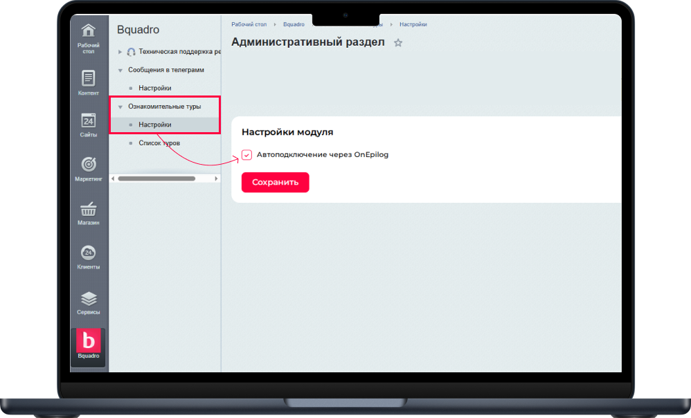 Модуль “Bquadro: Пошаговый обучающий тур по сайту”: