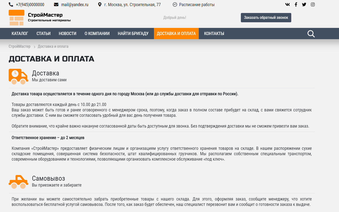 - Доставка и оплата