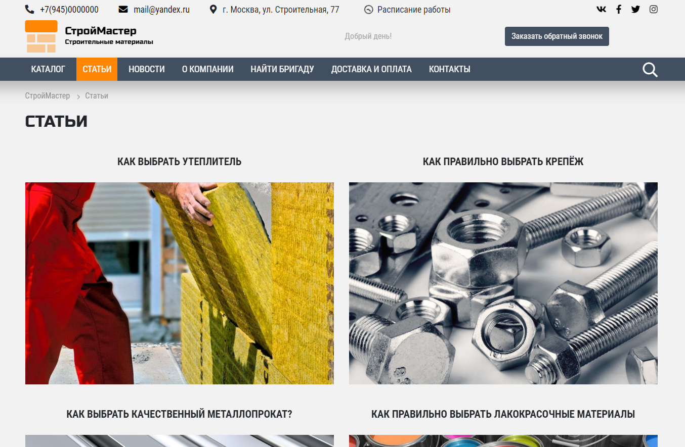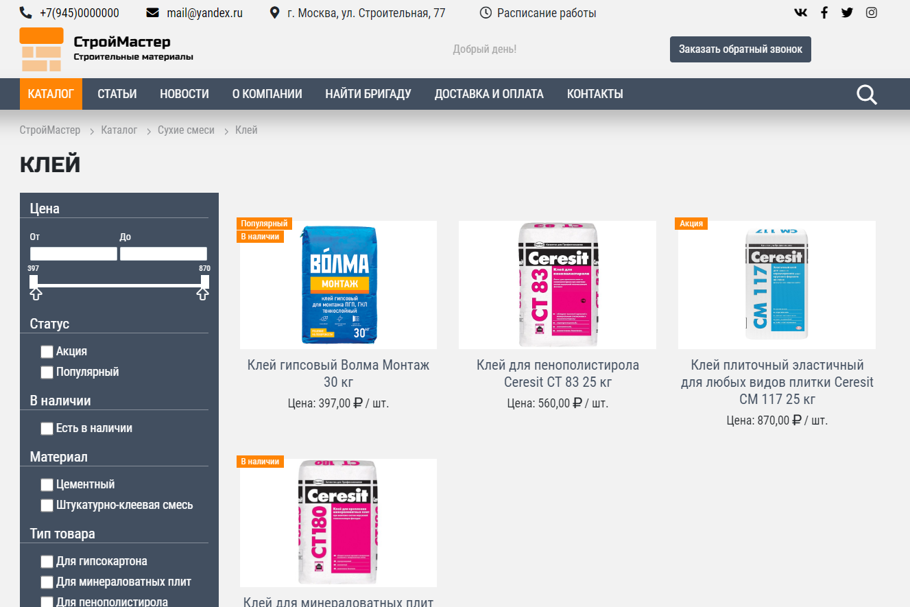 «КоЛайн: BUILD- Все для строительства и ремонта» – адаптивное готовое решение для быстрого запуска сайта. Подойдет организациям, реализующим товары для строительства и ремонтаПреимущества: