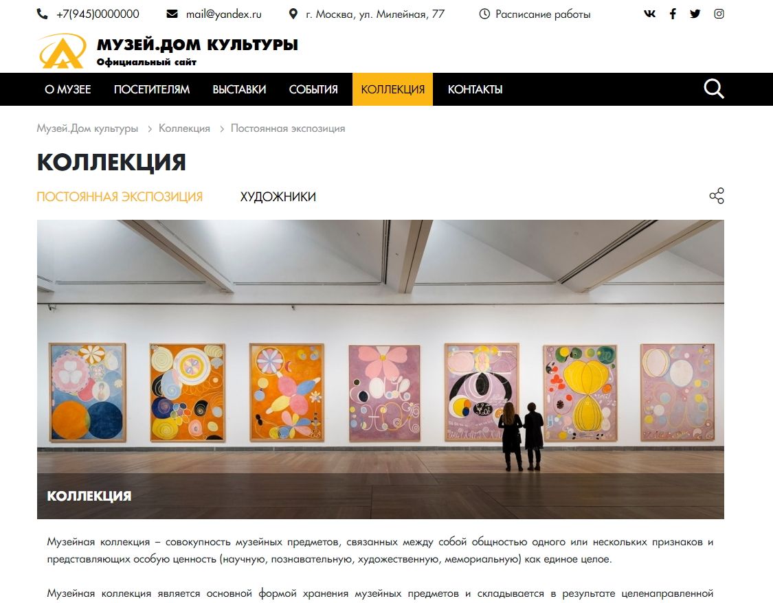 «КоЛайн: Сайт музея, дома культуры» – адаптивное готовое решение для быстрого запуска официального сайта музея, дома культуры или творческой студии.