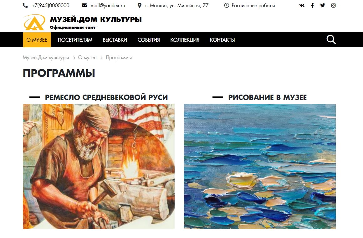 - Отвечает требованиям к сайту культурного заведения.