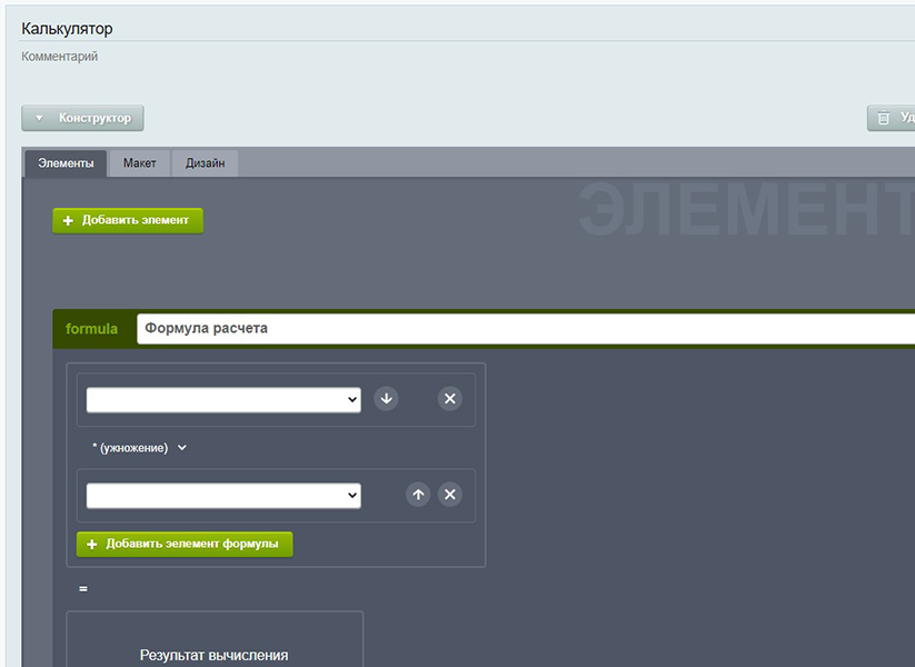 произвольное создание калькулятора в конструкторе