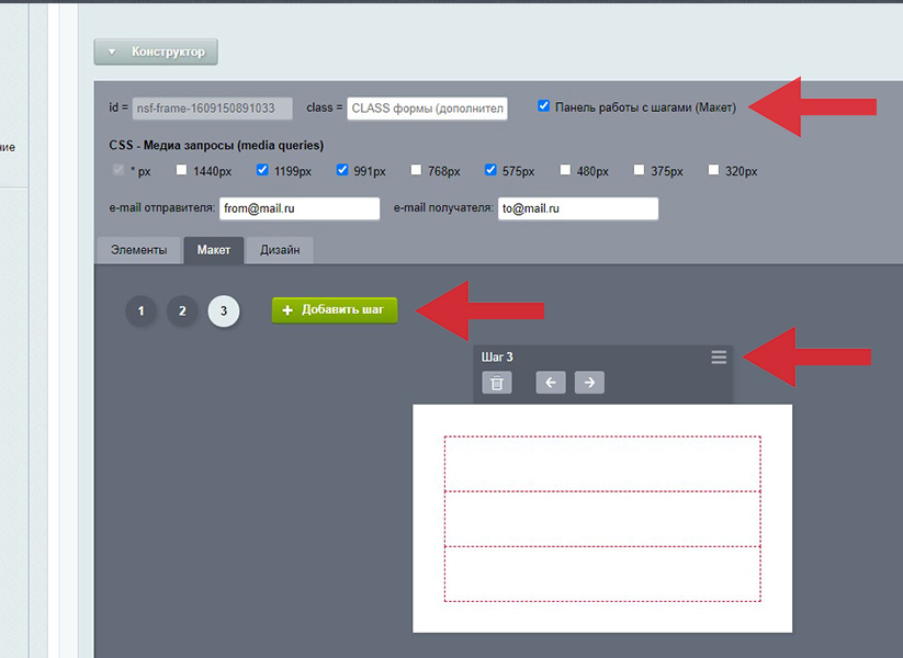 добавление шагов (окон)