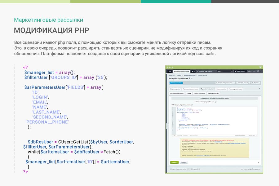 - Использование PHP в административном интерфейсе для модификации рассылок под ваши нужды